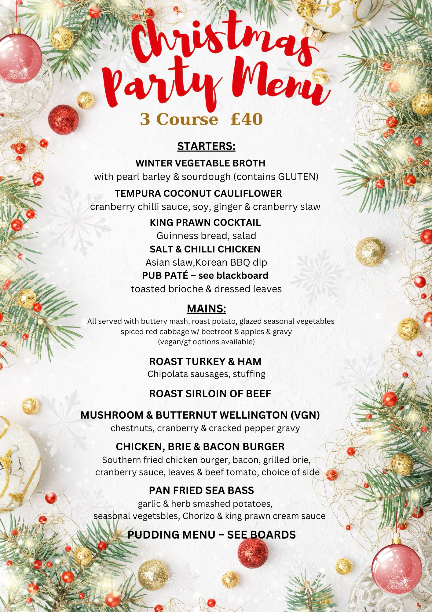 Christmas Party Menu